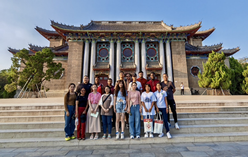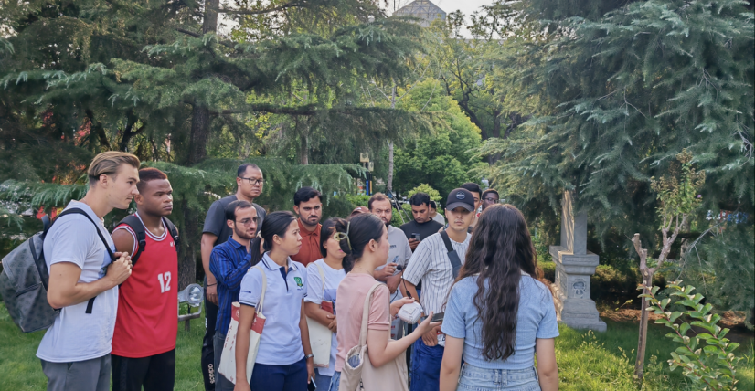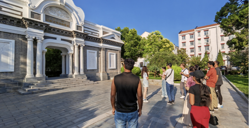 来自历史文化学院的专业学生与外语学院的译员同学带领国际学生就南门起经中轴线至大礼堂进行了游览讲解。从经历了87年的风吹雨打,依旧岿然不动的南大门,到建立于1912年的河南留学欧美预备学校、古朴典雅的河大十二斋,再到河大人的圣地和灵魂——璀璨、典雅的大礼堂,一路上,千姿百态的建筑群吸引着同学们的注目,大家用心感受着一砖一瓦间稳重优雅的历史感和建筑神韵,东方的文明气息和美轮美奂历史印记为来自世界各地的国际学生带来了丰富而震撼的体验。