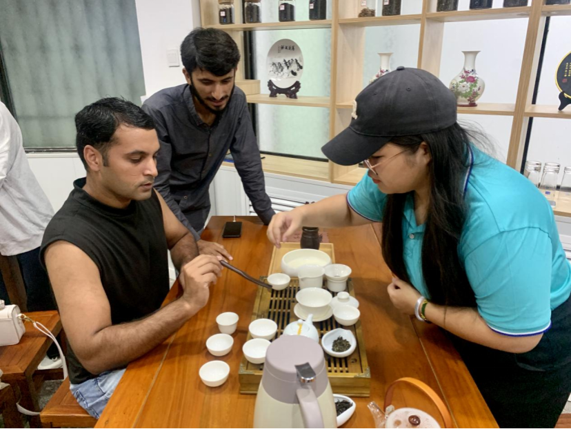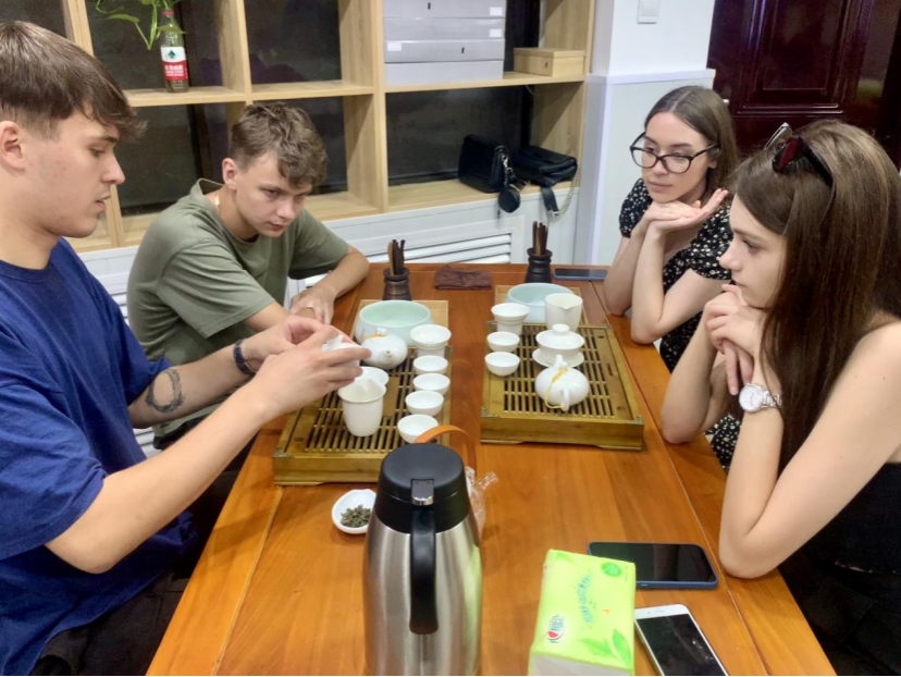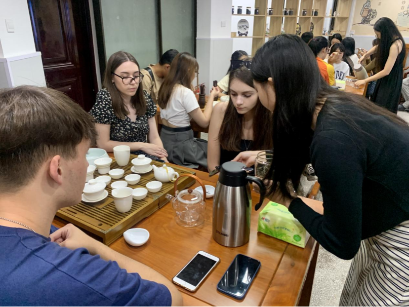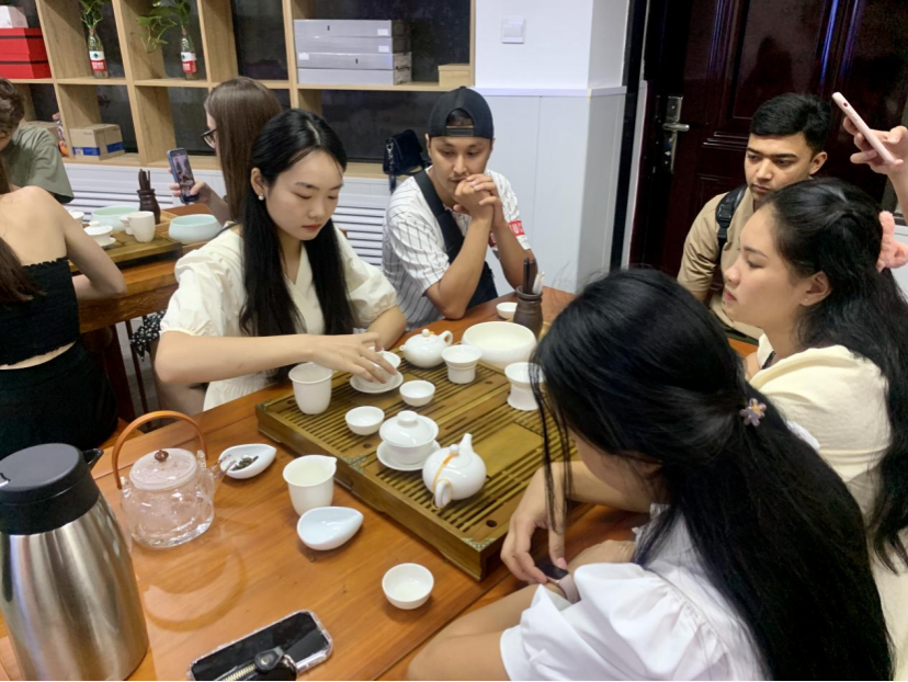 在“茶艺与茶文化”品茶活动中,来自文化旅游学院专业的学生为国际学生们展示、教授了茶文化以及如何鉴茶、品茶。在品茶的过程中,同学们对中国茶艺展现出了浓厚兴趣,体悟到了茶叶、茶具、冲泡、品鉴等中国茶艺蕴含的独特魅力。大家表示首次接触到茶艺与茶文化是一次独特而难忘的体验,层次丰富的茶香很令人着迷,中国富有个性和趣味的传统文化让他们成为名副其实的“中国迷”。