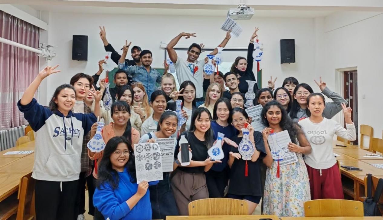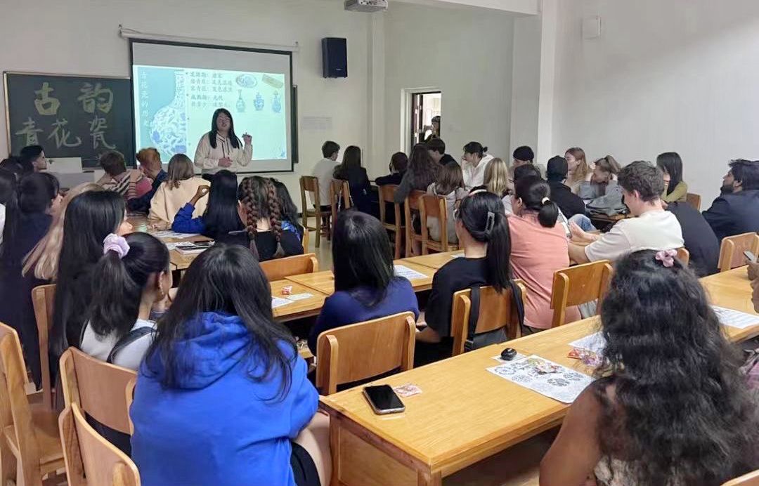 10月27日下午,由国际汉学院举办,安阳师范学院汉语国际教育专业硕士第三实习小组策划实施的古韵青花瓷文化沙龙活动在明伦校区明陞m88官方网站地址楼104教室举行,活动吸引了来自不同国家的40多名明陞m88官方网站地址参与。