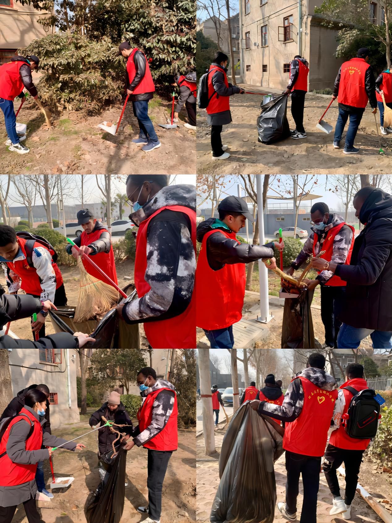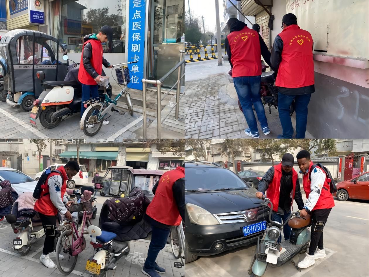 根据工作安排,第一组国际学生志愿者到达社区后便迅速投入志愿服务工作中,大家分工明确、高效有序地开展了卫生打扫、杂物清除、垃圾清运等工作,并对路边乱停乱放的电动车进行整理摆放。最终,在师生和社区工作人员的共同努力下,社区面貌干净整洁、焕然一新。