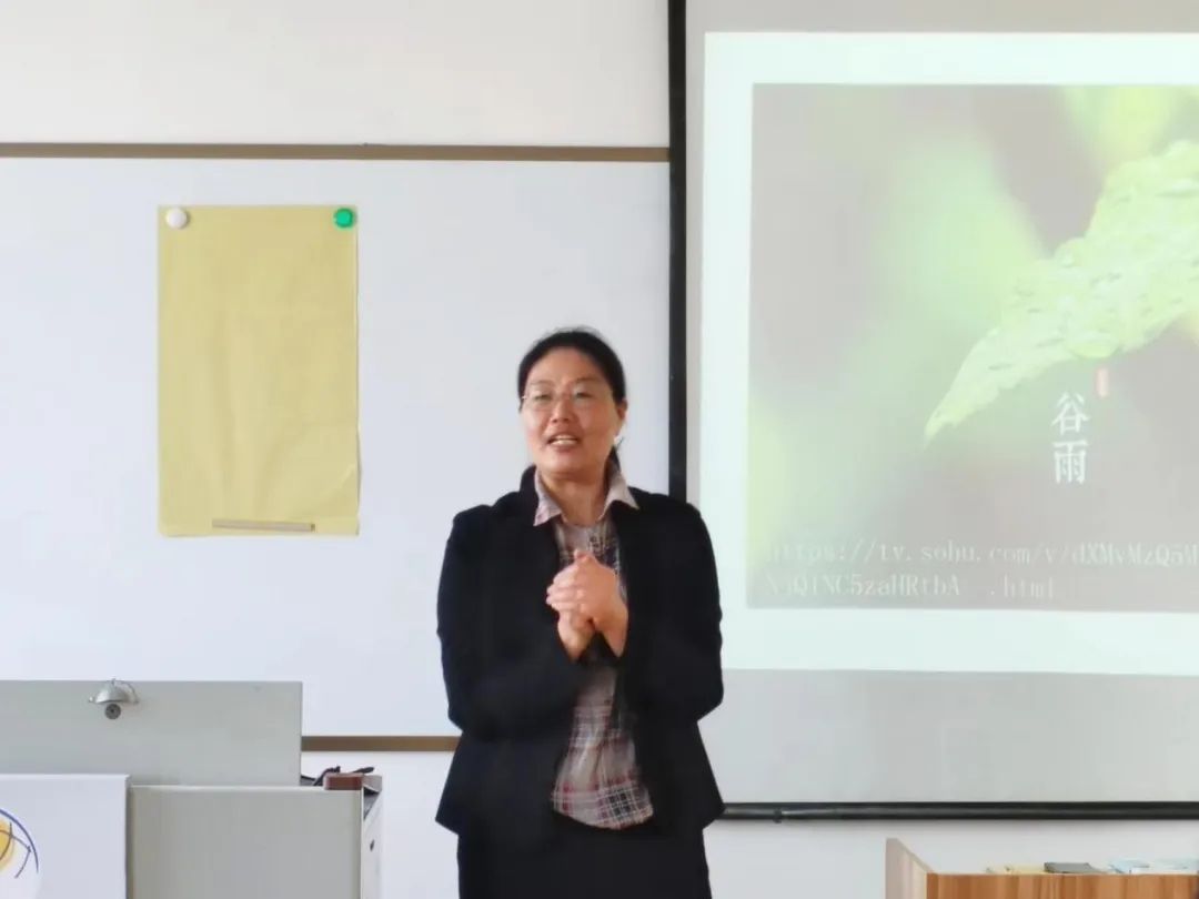2022级汉语国际教育本科班的专题文化课上,班主任乔玉雪老师特别策划,将“国际中文日”融入到课堂教学中,她以中国的二十四节气之“谷雨”作为课程引入,寓教于乐,用生动形象的语言将同学们带进“谷雨”的世界,让他们领略有关“谷雨”的习俗之趣和古诗之雅。同时,乔老师以“兰亭‘修禊’”的故事向大家展示了书法字体的奥妙,激发同学们对中华优秀传统文化的兴趣和热情。