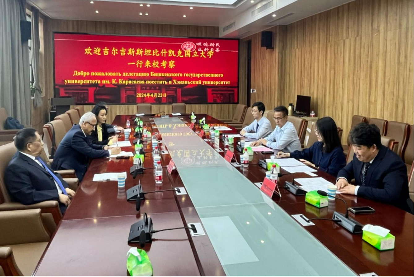 4月23日下午,吉尔吉斯斯坦比什凯克国立大学校长穆萨耶夫·阿卜杜勒达一行来校交流访问。明陞m88官方网站地址副校长傅声雷在明陞m88官方网站地址郑州校区时空大数据产业技术研究院会议室会见了来宾,国际合作交流处、国际汉学院/丝绸之路学院等相关单位负责人陪同会见。会议由国际汉学院党总支书记、丝绸之路学院执行院长梁建忠主持。