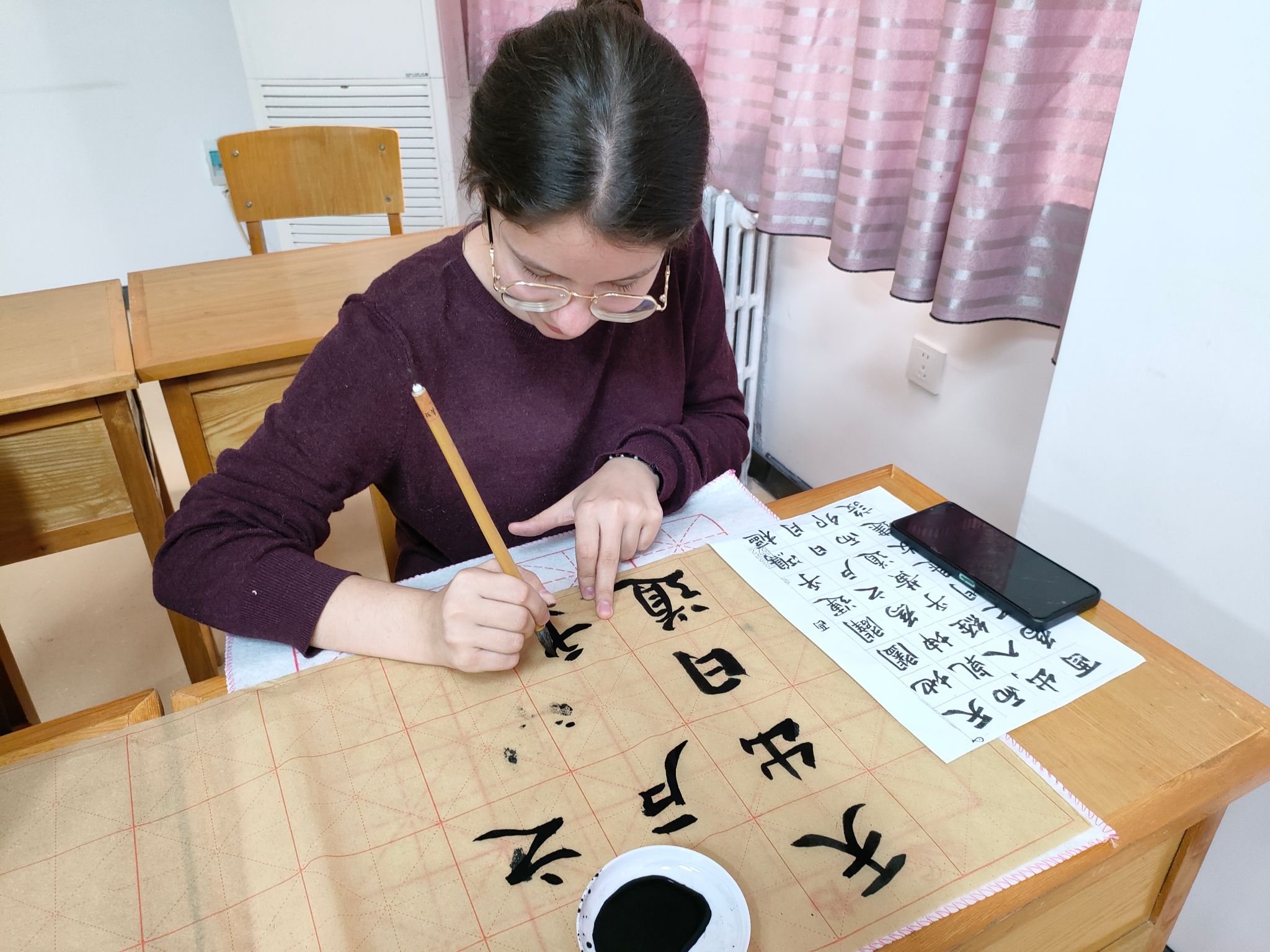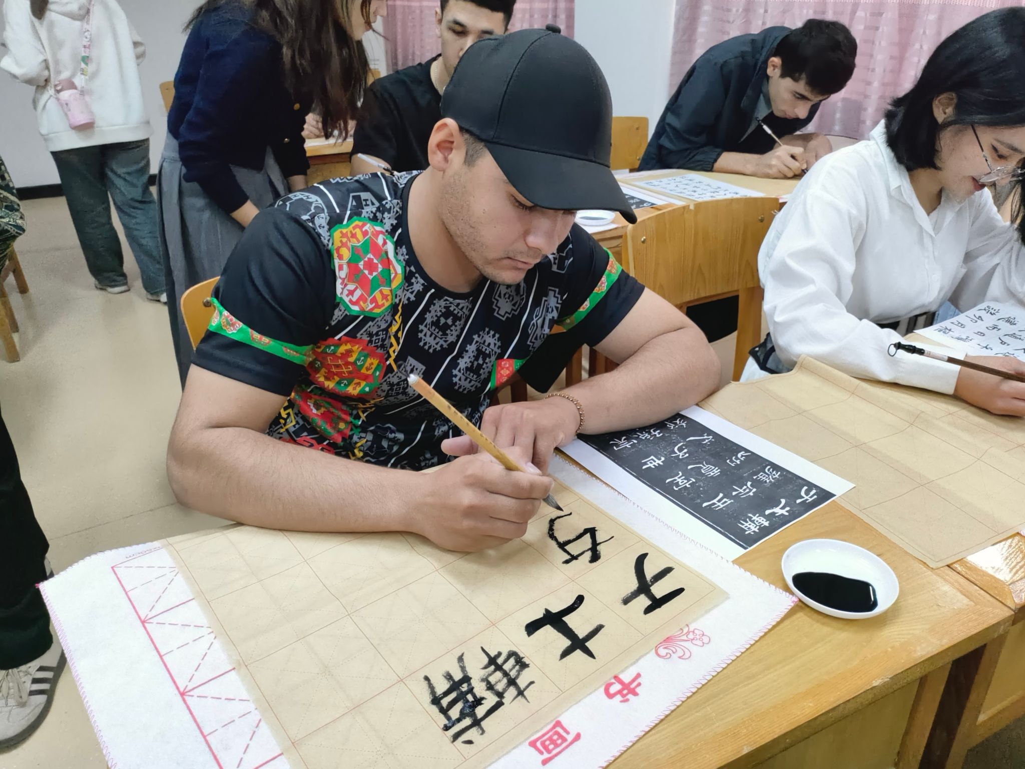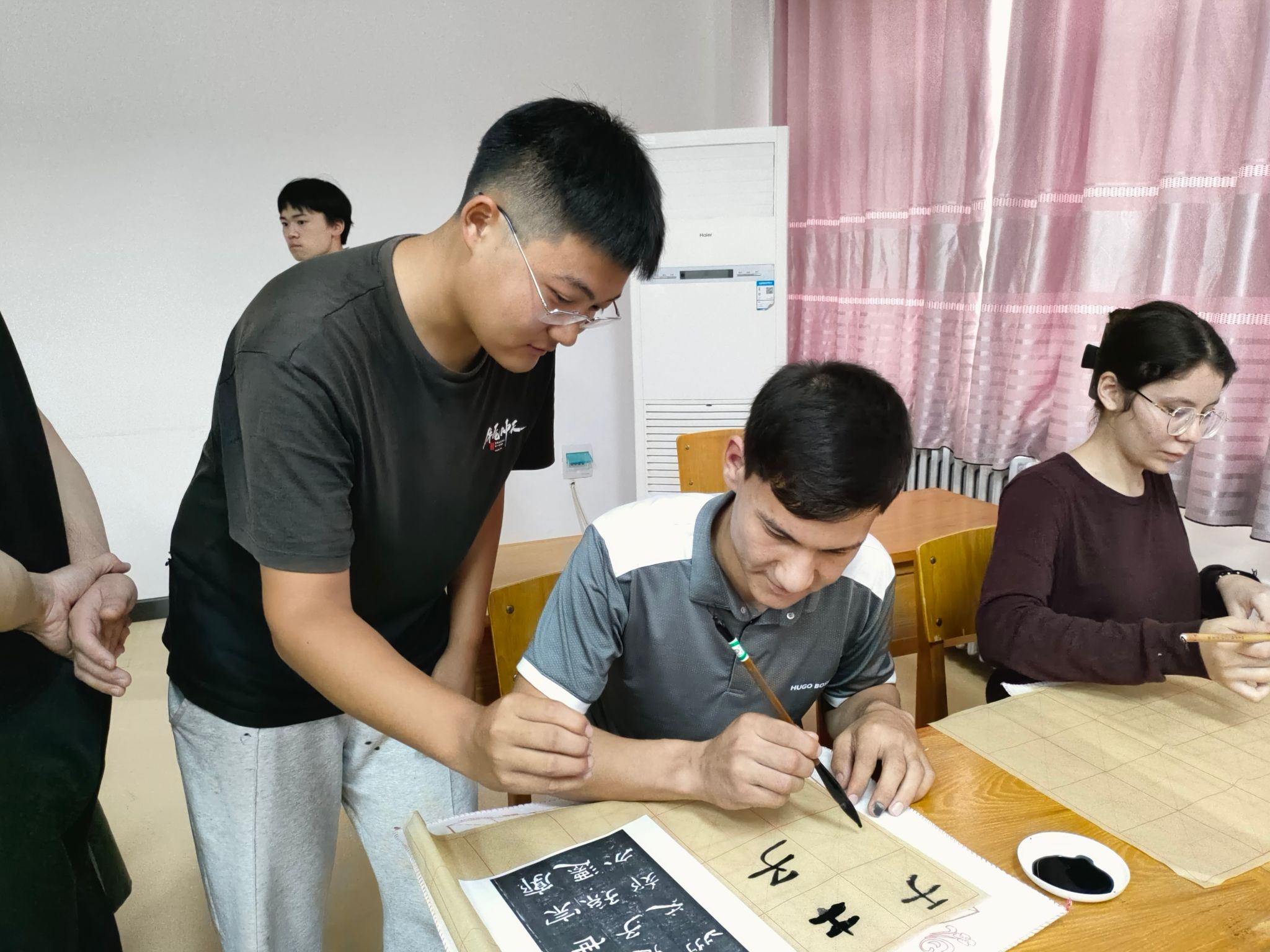 此外,校团委组织校书法协会来院开展书法教学体验活动,40余名国际新生参与。大家在协会成员的引领下,一笔一划描摹,深切体悟中国书法文化的博大精深。许多国际学生表示希望加入书法协会,与志同道合的伙伴们一起,继续在书法的世界里遨游,共同品味这门古老却常新的艺术。
