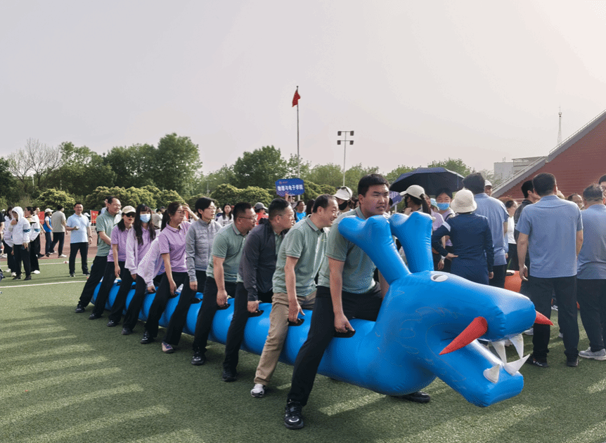 旱地龙舟项目则需要队员们保持高度的专注和默契。大家通过口号来统一节奏,确保每个人的步伐协调一致。前排的队员负责把握方向,确保“龙舟”能够沿着赛道直线前进;后排的队员则用力推动,为“龙舟”提供强大的动力。尽管“龙舟”偶尔出现轻微晃动,但队员们凭借顽强的毅力和坚定的信念,迅速调整状态,全力向前冲刺,获得全校第七名。