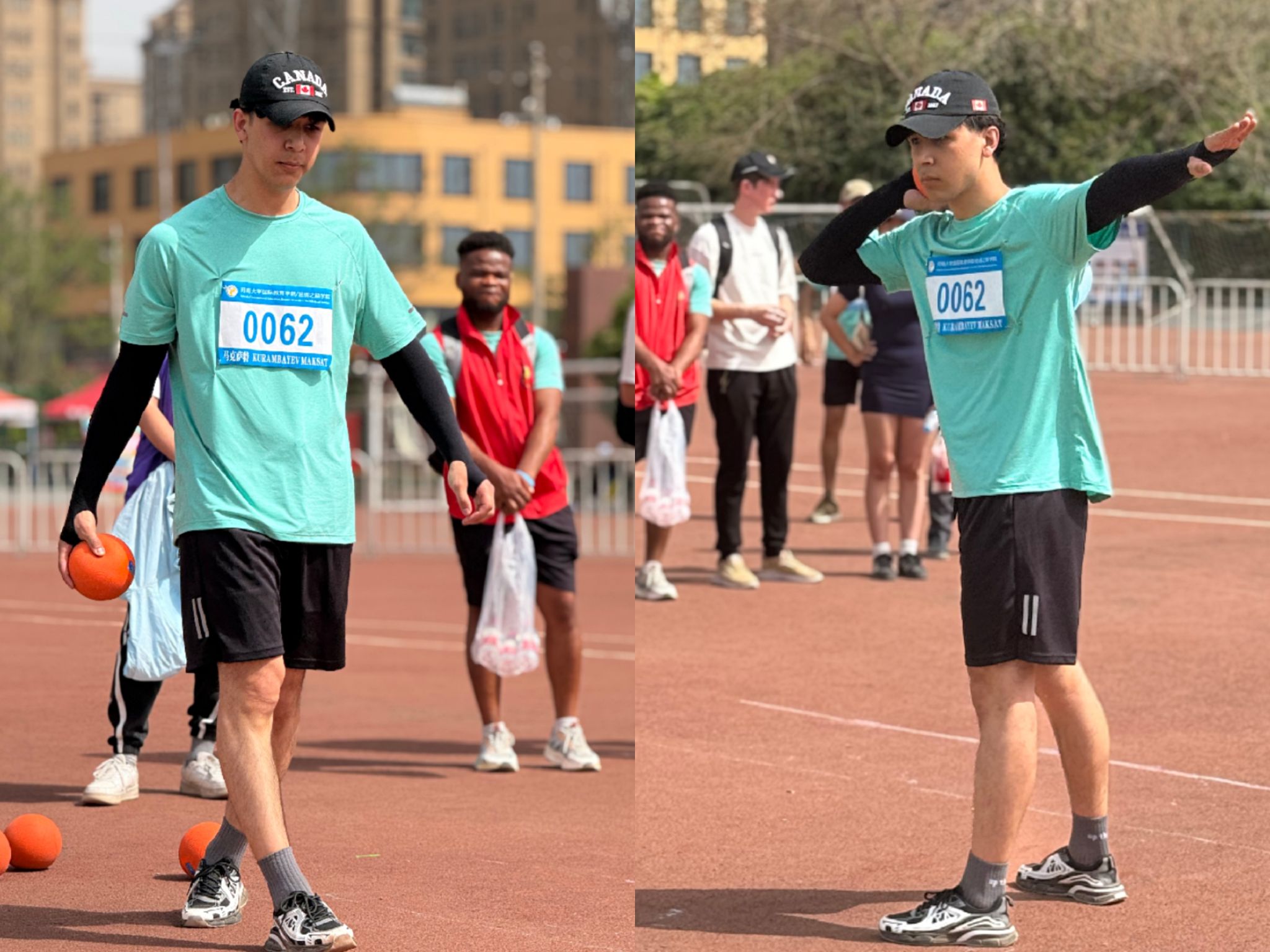 土库曼斯坦学生马克萨特(KURAMBAYEV MAKSAT)在实心球项目中沉着冷静,稳扎稳打,最终取得了第五名的成绩。
