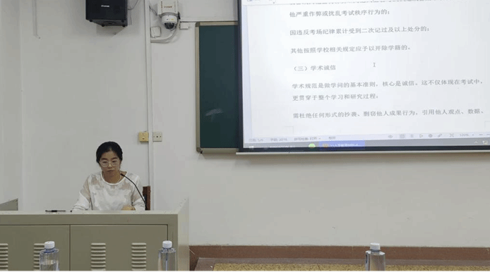 随后,学院教务办公室刘美玉老师聚焦教学管理核心内容,为新生提供专业指引。她结合国际学生的学习特点,围绕学籍管理、课程选修、考试纪律、毕业要求、学分认定及学术诚信等六大模块进行细致讲解,为新生明晰学业规划路径提供了参考。