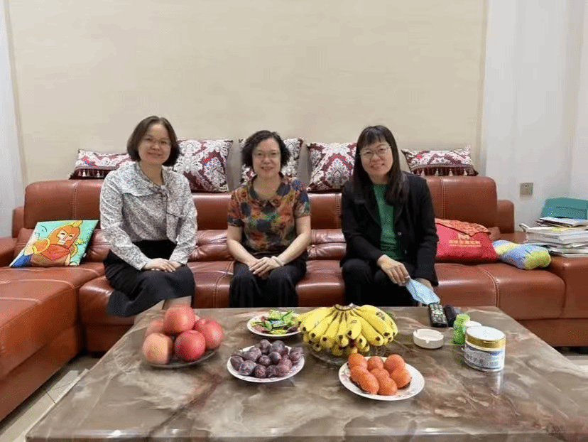 在两位老师家中,李香玲关切询问他们的生活起居与健康状况,她详细介绍了学院近期在国际学生培养、教学科研等方面的发展成果,同时感谢两位老师为学院发展所做的贡献,并邀请老教师们常回学院交流,为青年教师成长提供指导。