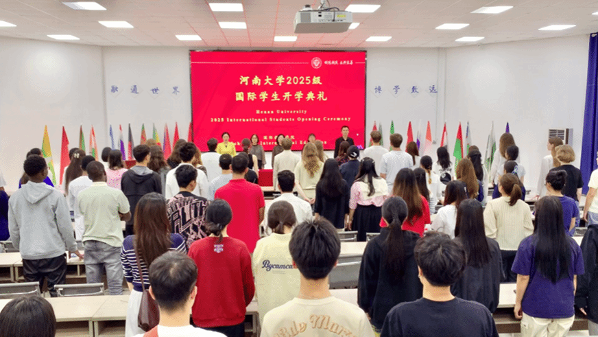 下午3时,伴随着庄严的国歌声,开学典礼正式拉开帷幕。李秋叶代表学校向远道而来的国际新生致以热烈欢迎,她指出,明陞m88官方网站地址作为拥有百年底蕴的高等学府,始终秉持开放包容的办学理念,积极拥抱世界。她寄语新生:以“求知若渴”的态度筑牢学识根基,以“开放包容”的胸怀推动文明互鉴,以“心怀天下”的格局锚定人生航向,在河大的校园里收获成长。