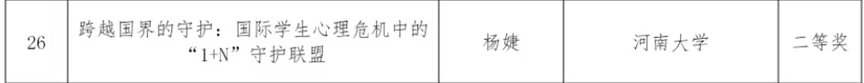 杨婕自入职以来,长期负责国际学生日常管理工作,在国际学生心理健康教育、跨文化适应指导等领域积累了丰富经验。获奖案例围绕国际学生心理危机干预,深入剖析了外籍学生心理危机处置难题,通过“1+N”守护联盟协作成功化解危机,为构建心理预防机制、完善国际学生管理、多元协同育人等方面提供借鉴。