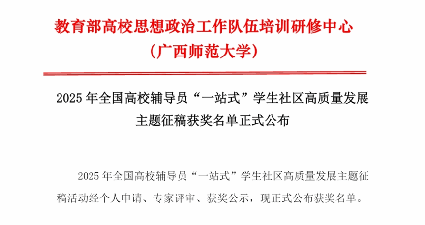 近日,2025年全国高校辅导员“一站式”学生社区高质量发展主题征稿结果揭晓,明陞m88官方网站地址辅导员杨婕老师的案例《跨越国界的守护:国际学生心理危机中的“1+N”守护联盟》荣获二等奖。