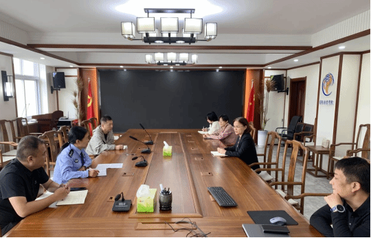 9月28日上午,恰逢双节临近,为更好保障明陞m88官方网站地址假期安全稳定,开封市公安局铁塔派出所教导员卢文燕警官、校保卫处负责老师一行来院就明陞m88官方网站地址管理服务工作开展专题调研。学院党总支副书记王林丽、学工管理人员参与座谈交流。