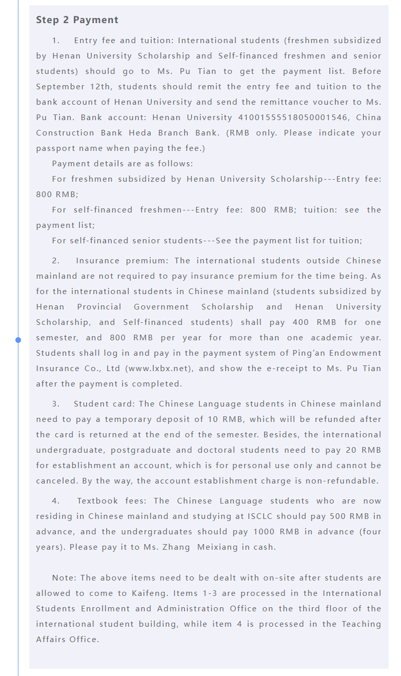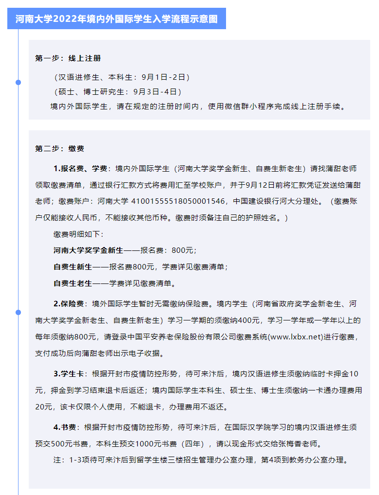 (二)现居住在中国大陆境内汴外的国际学生,鉴于当前疫情防控形势,为切实保障广大师生健康安全,确保平安开学、开学平安。按照开封市及学校疫情防控要求,在规定的报到时间内,使用微信群小程序完成线上注册,并于9月12日前将相关费用汇款凭证发送至蒲甜老师邮箱(976221815@qq.com)。未获明陞m88官方网站地址疫情防控外事专班批准,一律不得来汴办理注册手续。