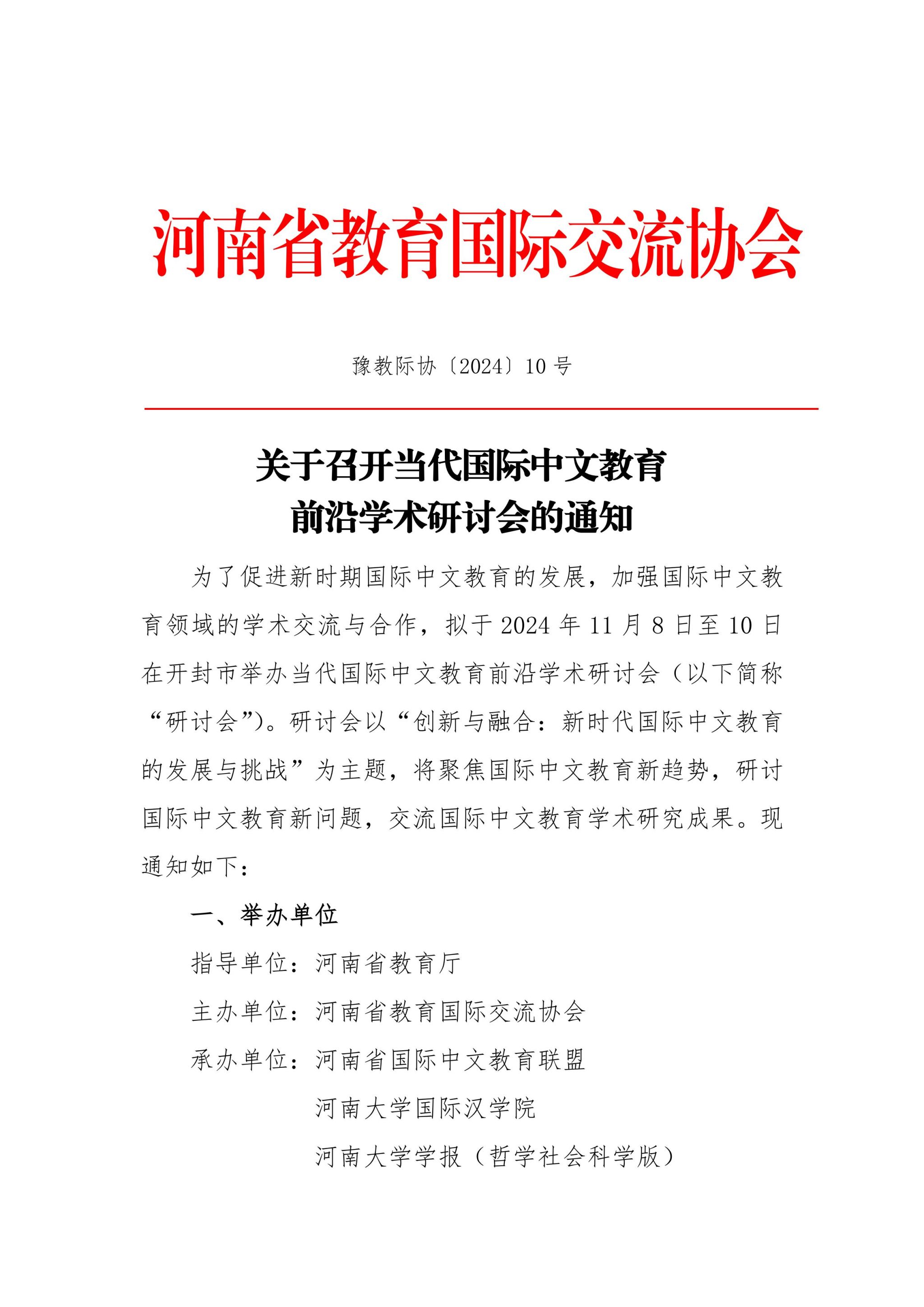 关于召开当代国际中文教育前沿学术研讨会的通知