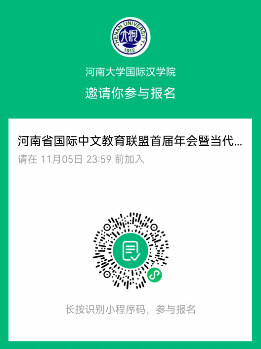 报名参会者请扫描下方二维码填写参会信息,同时将论文摘要(字数500-800字,关键词3-5个)以附件形式提交至会议指定邮箱:hdgjhxy2024@163.com,邮件名称标注“姓名-单位-2024年河南省国际中文教育联盟年会。全文投稿格式请参考《明陞m88官方网站地址学报(社会科学版)》(https://hnds.chinajournal.net.cn/WKH2/WebPublicat ion/index.aspx?mid=HNDS#)大会将组织专家评审,择优录用,论文将有机会被推荐至《明陞m88官方网站地址学报(社会科学版)》国际中文教育专栏发表或会后出版文集。