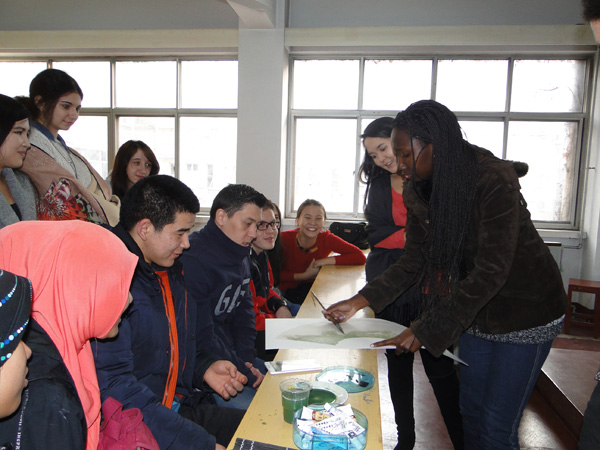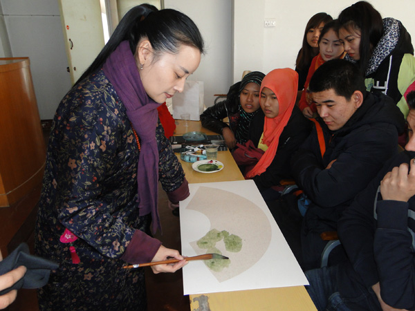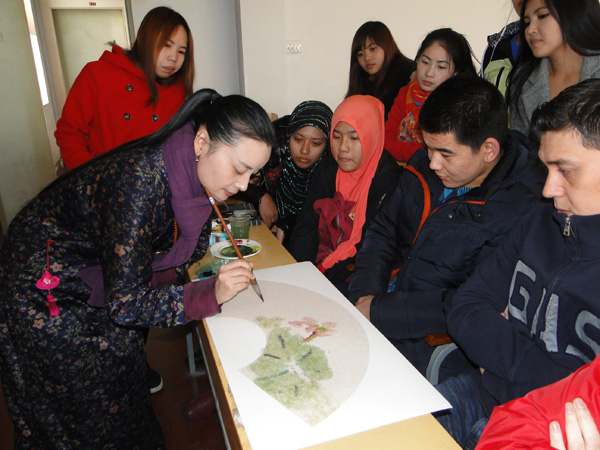 12月2日下午,明陞m88官方网站地址国际汉学院邀请开封市国画大师胡娟老师为明陞m88官方网站地址讲解国画的知识。