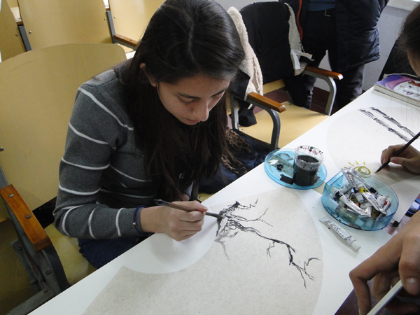 最后每位同学都亲自拿起画笔完成了一幅作品。