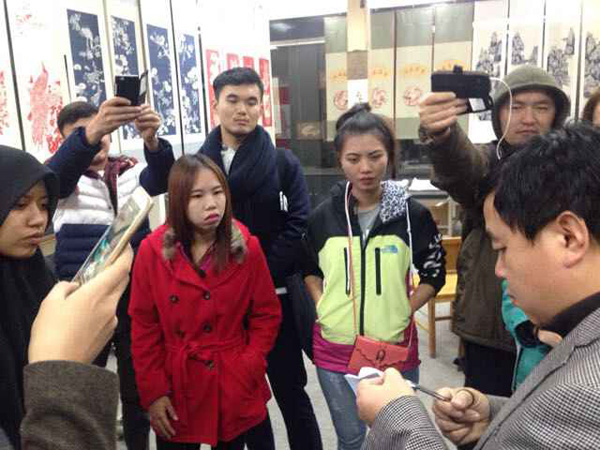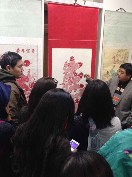 11月18日下午,明陞m88官方网站地址到6号楼参观了剪纸艺术家张朝晖老师的作品展览。