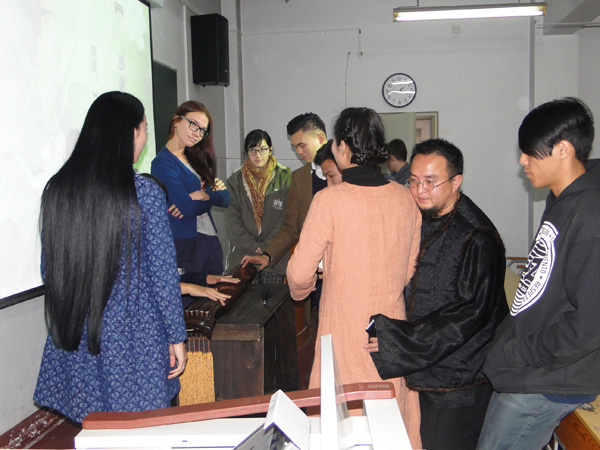 讲座结束后梅溪老师为明陞m88官方网站地址弹奏了一些古琴名曲,同学们都听得津津有味,很多同学上前去请教老师并且亲自试着弹奏。
