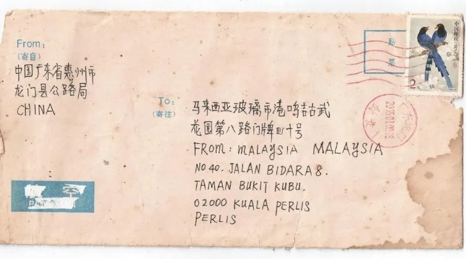 而我手中的这张照片,就是我的爷爷,他在1940年跟着他的爸爸从中国来到马来西亚谋生。一待就是六七十年,爷爷虽然在异国他乡待了那么长时间,但中间从未与中国的亲戚断了联系。我左手拿的信件,就是二十多年前从中国寄过来的。上边我们可以看到以前只会把信件寄到公路局,不会寄到家里,以至于如今的我没办法知道表姑家的确切位置。以前也不像如今科技这么发达,一通电话在现在说来不过是很简单的事情,而在当时,却是再难不过。