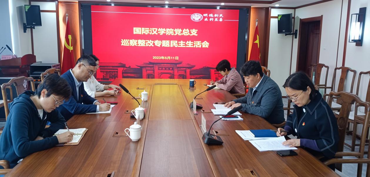为落实落细巡察整改工作,有力推动学院高质量发展,国际汉学院党总支于5月11日在学院314会议室召开巡察整改专题民主生活会。校党委第一巡察组副组长、副处级巡察专员曹志伟、第一巡察组成员吕梦函、纪委监察专员办公室综合室信息化科副科长王全慧列席会议。会议由学院党总支书记梁建忠主持。